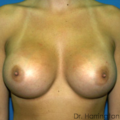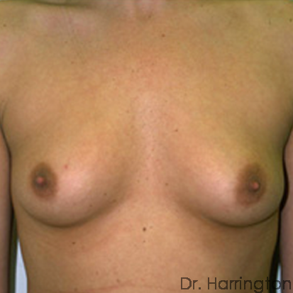 This female in her 20s had breast augmentation with silicone implants by Dr. Jennifer Harrington.